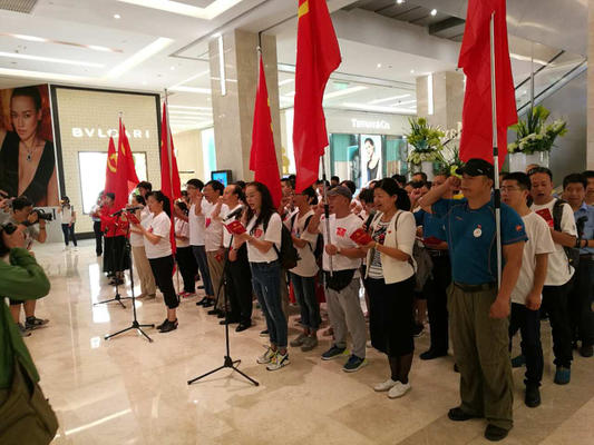 大河網(wǎng)訊(記者 莫韶華)“我志愿加入中國(guó)共產(chǎn)黨,擁護(hù)黨的綱領(lǐng),遵守黨的章程……”7月1日上午,在鄭州丹尼斯大衛(wèi)城,近百名黨員和志愿者以快閃的形式“喜迎黨的生日,重溫入黨誓詞”。