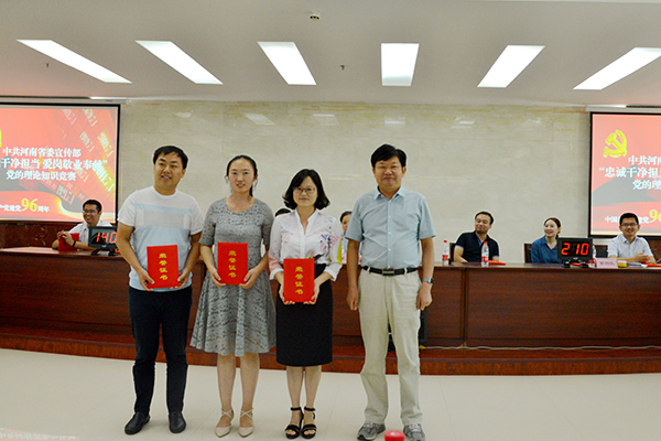 7月7日下午,省委宣傳部舉辦“忠誠干凈擔(dān)當(dāng) 愛崗敬業(yè)奉獻(xiàn)”黨的理論知識(shí)競賽,省委網(wǎng)信辦副主任蔡新民同志、省委宣傳部副巡視員趙鋼同志、《黨的生活》雜志社總編趙云龍同志、省委宣傳部副巡視員李文良同志等部領(lǐng)導(dǎo)出席,部機(jī)關(guān)全體黨員參加。