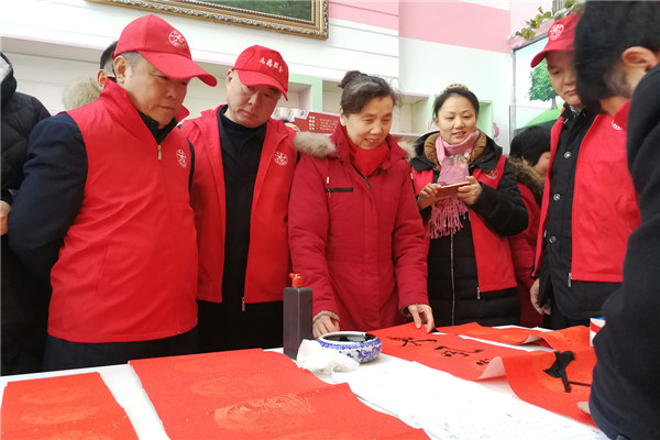 在“迎新春、送春聯(lián)”活動現(xiàn)場,書法家們揮毫潑墨,為廣大黨員群眾書寫春聯(lián),吸引了多名書法愛好者現(xiàn)場求教;黨員群眾們拿著剛寫好的還飄著墨香的春聯(lián),欣賞、贊嘆、感謝聲不絕于耳。