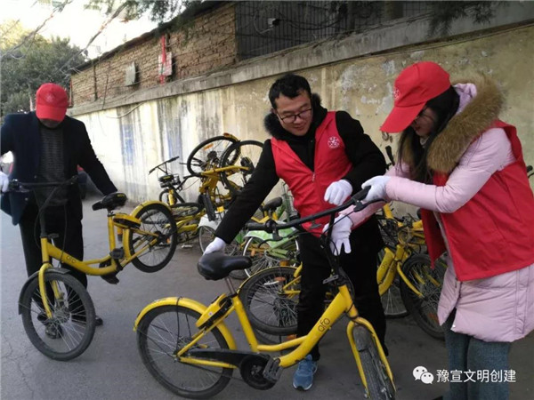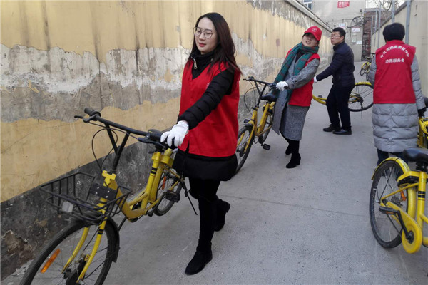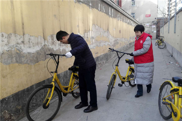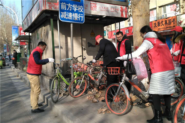 志愿者們冒著寒風(fēng)和低溫,清理家屬院里違規(guī)停放小黃車,并引導(dǎo)社區(qū)居民講文明、樹新風(fēng),養(yǎng)成良好的行為習(xí)慣。經(jīng)過一個多小時的勞動,雖然手都凍紅了,但看到近百輛擺放的整整齊齊的單車和井然有序的院子,大家都有滿滿的成就感,也體會到了奉獻(xiàn)的快樂。