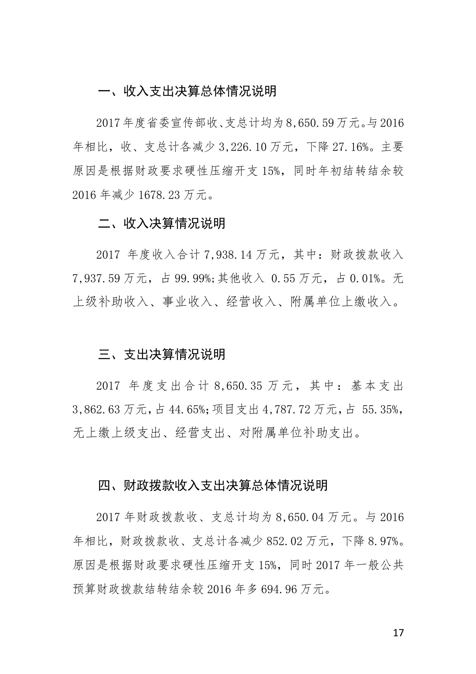 2017年度中共河南省委宣傳部部門決算公開(kāi)